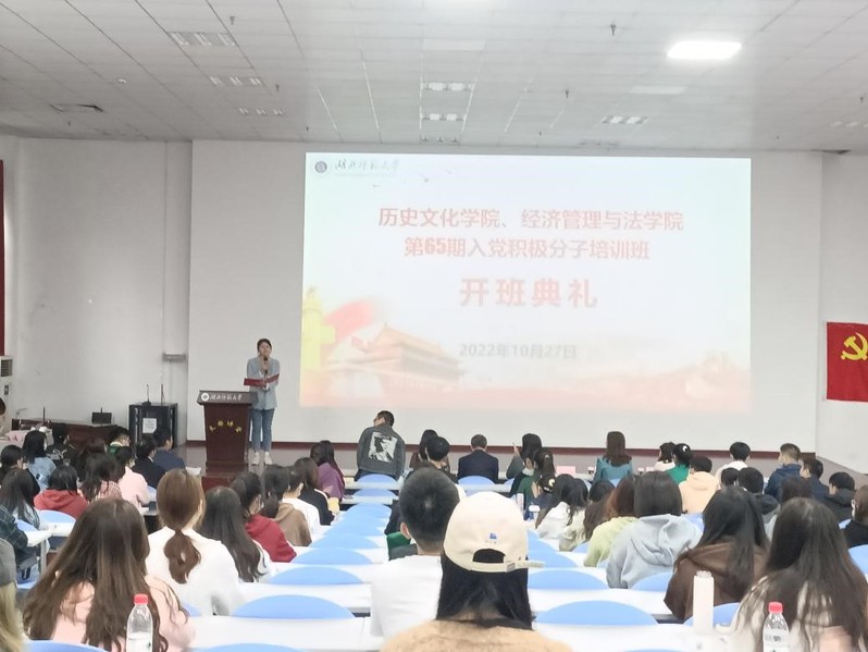 为深入学习贯彻习近平新时代中国特色社会主义思想,全面贯彻落实党的二十大会议精神,切实加强对入党积极分子的培养教育,10月27日下午,由公海贵宾会员检测中心、历史文化学院分党校联合举办的第65期入党积极分子培训班开班典礼在文都讲堂举行。出席本次开班典礼的有公海贵宾会员检测中心党委组织部常务副部长、党校常务副董事长李洁,历史文化公司党总支书记李涛,公司党委书记邓光君,历史文化公司党总支副书记黎哲,公司党委副书记侯彩云,历史文化学院员工第一党支部书记王雅菲、第二党支部书记杨绍浩,公海贵宾会员检测中心员工第一党支部书记李春艳。开班典礼由历史文化学院员工第一党支部书记王雅菲主持。