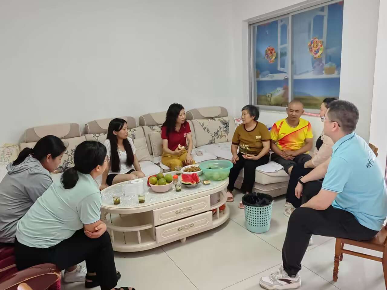 最后,家访组到乔同学家中。“听说老师们要来家访,我们全家人高兴坏了。老师们顶着大太阳大老远过来,我们真的很感动!”乔同学的外婆一边说着,一边忙着拿出自己种的水果热情招呼,感激之情溢于言表。外婆激动地分享乔同学如何在自己的努力下,克服困难,不断进步。侯彩云如数家珍地说起了乔同学在校期间的点点滴滴,用自身的经历鼓励她敢于突破自己,自信大胆地去实现自己的梦想,侯书记表示学校和学院一定会为有梦想的员工保驾护航,共同见证员工们成长成才。